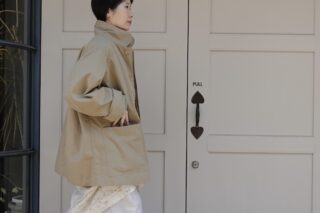 こちらも先ほどご紹介したワンピースと同じ“ヴィンテージカーキ”のお色です。