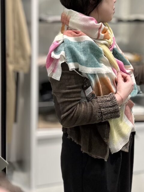 昨年よりお取り扱いを始めたカシミアストールのMe&K(ミーアンドケー)。11/22土曜より期間限定で、バリエーションが揃います。