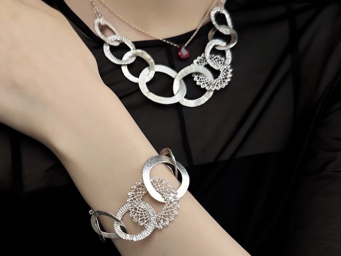 過去の懐かしいコレクションとのスタイリングも、時の流れを感じさせないほどに馴染むKAORUのジュエリー。