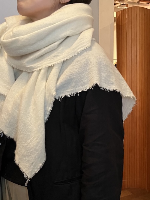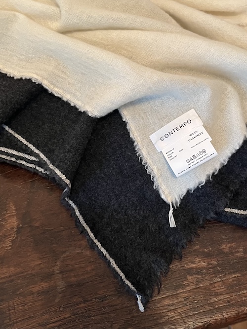 wool cashmere stole ¥41,800 / off white, charcoal / wool90%, cashmere10% (YAECA CONTEMPO)