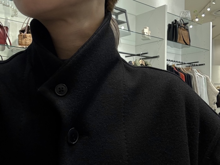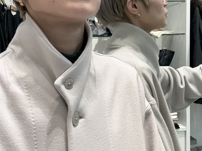 antieスタッフも展示会で一目惚れした、一枚仕立てのボックスコート。