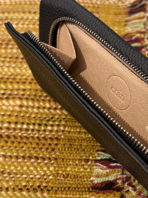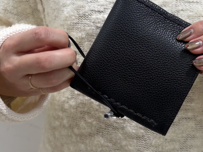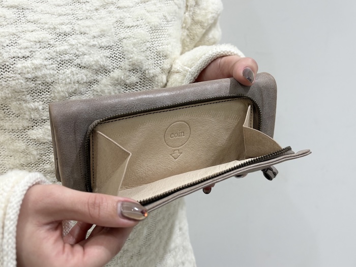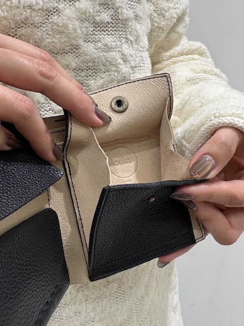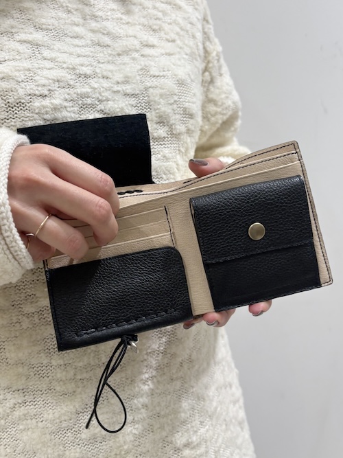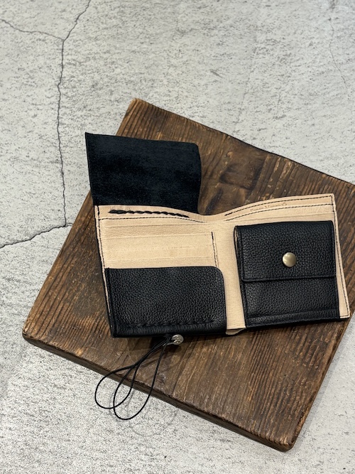 先にご紹介した牛革のフニュシュリンクシリーズからは、コンパクトな二つ折り財布も届いています。