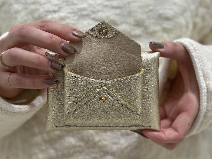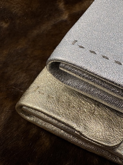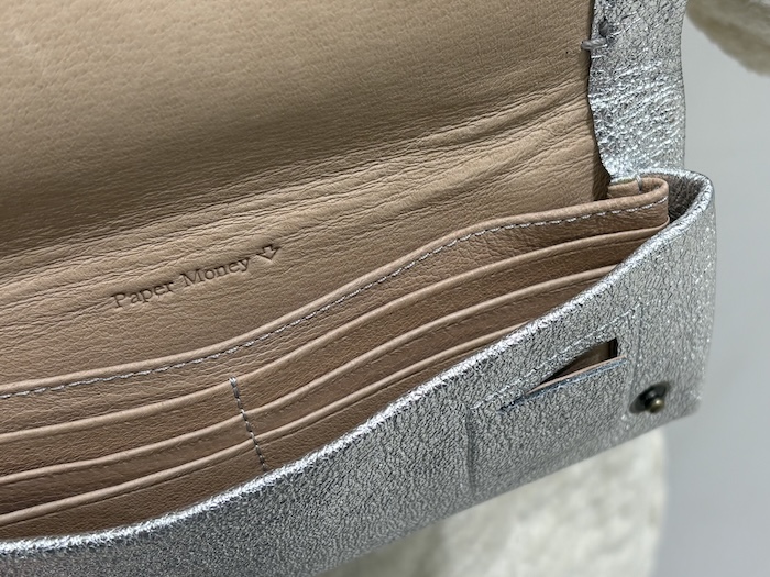 両面に収納機能のある封筒型のお財布は、先にご紹介したソフトメタリックシリーズから。