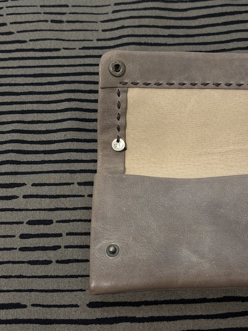 ロウビキの糸で手縫いされたステッチや、歪さに愛らしさを感じるフォルム、丁寧になめされたレザー。