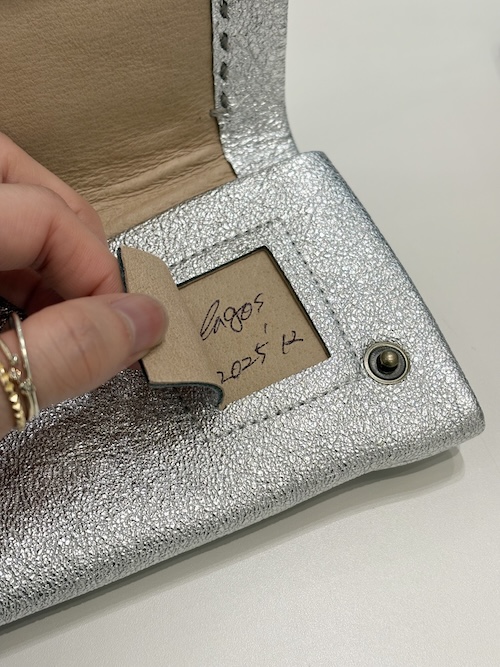 eb.a.gosのお財布には、ひとつひとつ、全てに製作された年月が記載されています。