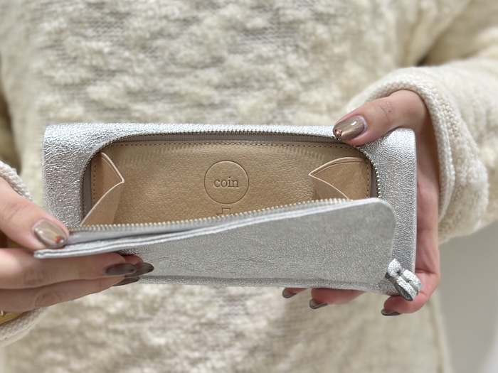 soft metallic soft long wallet ¥36,300 / gold, silver / goat leather