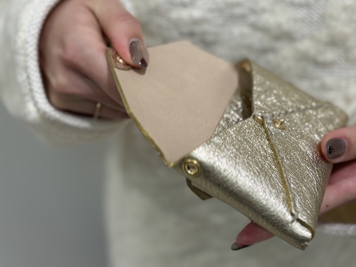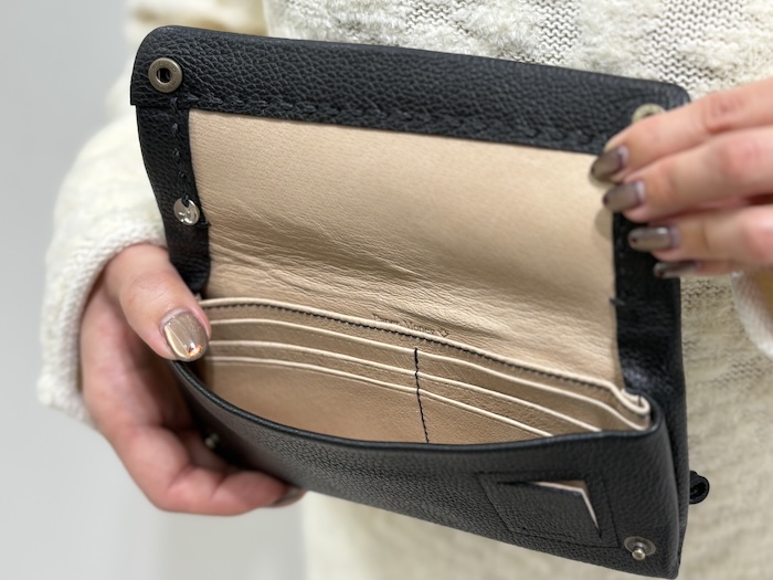 山羊革は牛革に比べ薄く強度があり、さらに耐摩擦性にも優れているため財布に用いられる事が多い素材です。