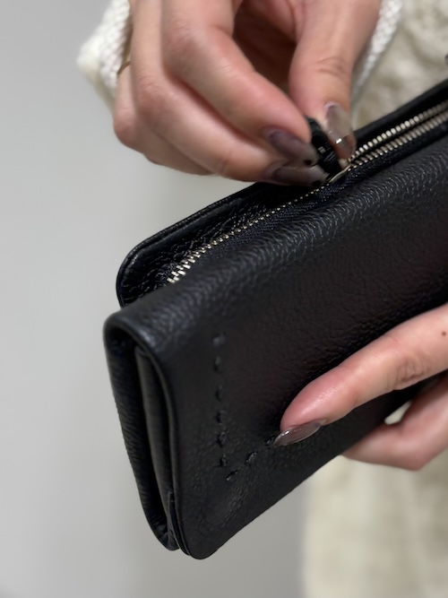 funyu shrink soft long wallet ¥31,900 / black / calf leather