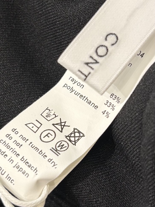 ポリエステル×レーヨン×ポリウレタンの生地は縦横(2WAY)に伸びるストレッチ素材で、動きやすく上品な見た目を保ちつつストレスなく着用できます。