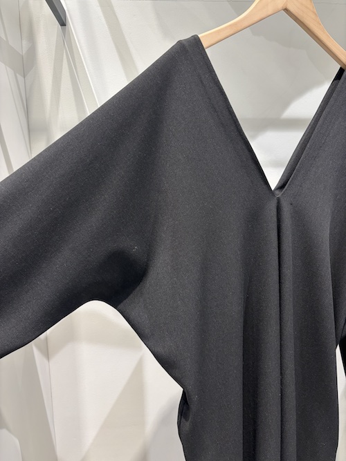 立体的なパターンを平面的なパターンで仕立てることで、着用したときに自然なタックができ、独特のシルエットを生み出します。