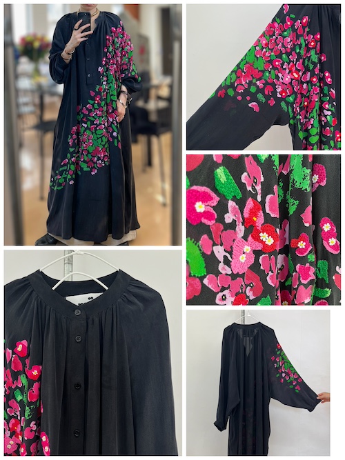 DRESS ITAKE /PRINTED HAND EMBROIDERED SILK LONG DRESS
