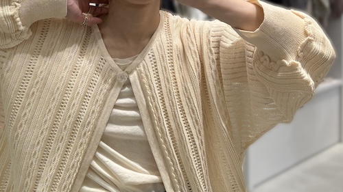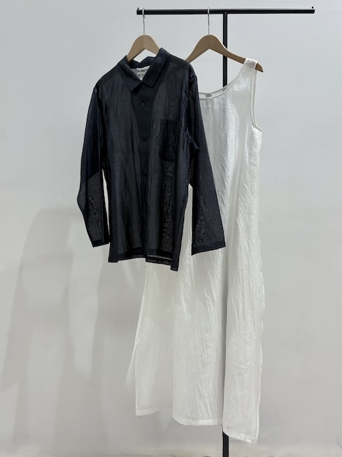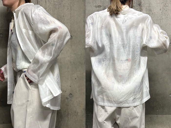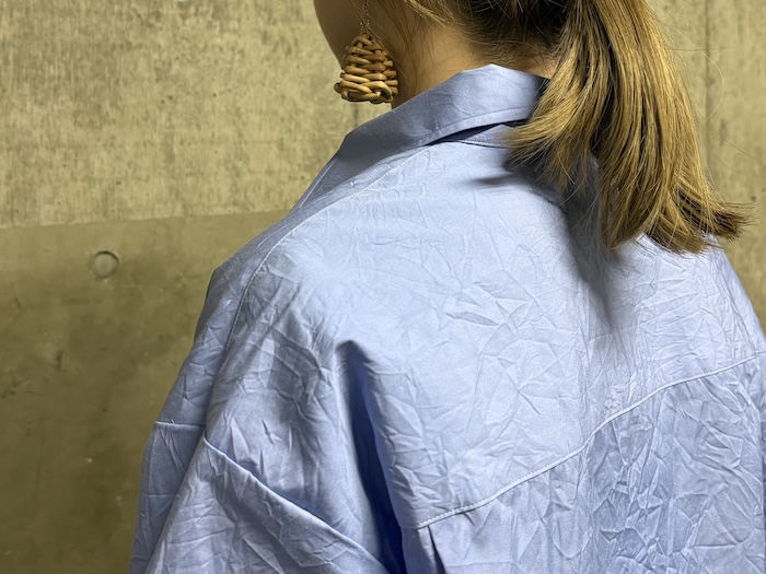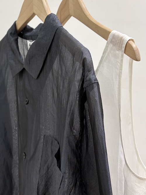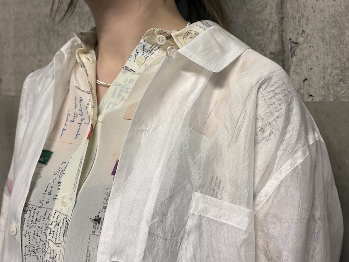 透明感溢れるシアーな薄手シャツはインナー選びも楽しく、手持ちのプリント、カラーアイテムにレイヤードする事で一枚ベールを被せたような柔らかさを演出してくれます。