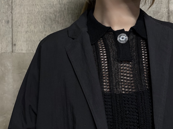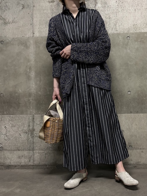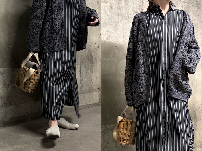 ドレスはヒップラインまでスリットが入っているため、レイヤードアイテムとしてお楽しみください。