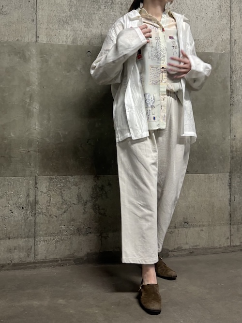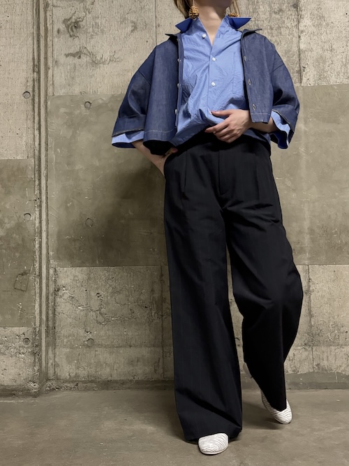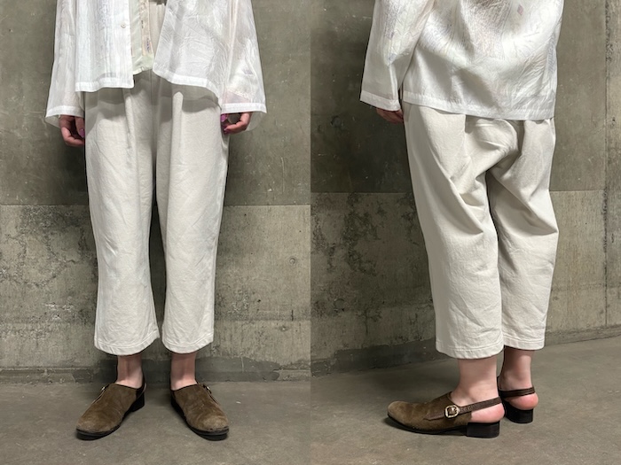 スタイリングで着用のパンツは同じく4/18(土)よりご案内のevam eva(エヴァム エヴァ)から。