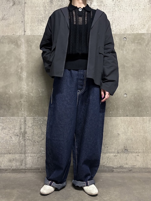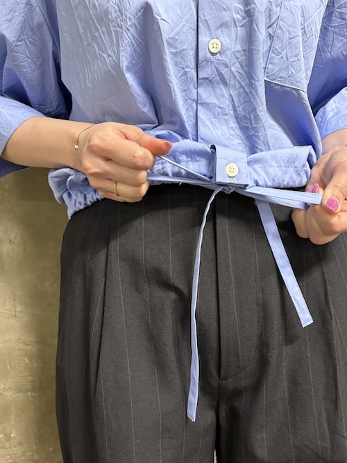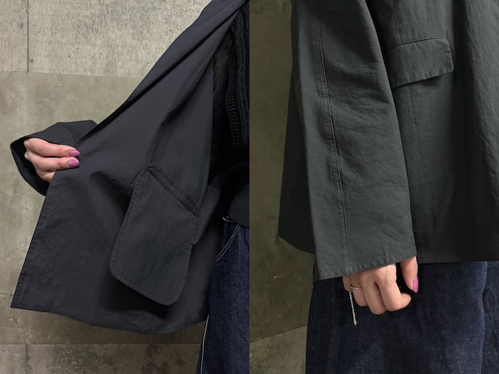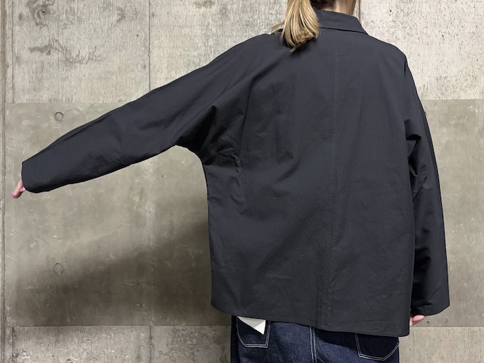 着丈バランスやシルエットの自由度が高く、裾がドローストリング、フロントが前開きの仕様となっています。