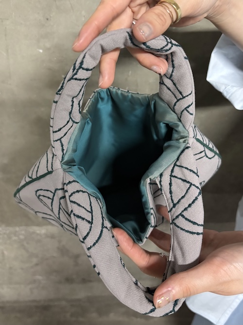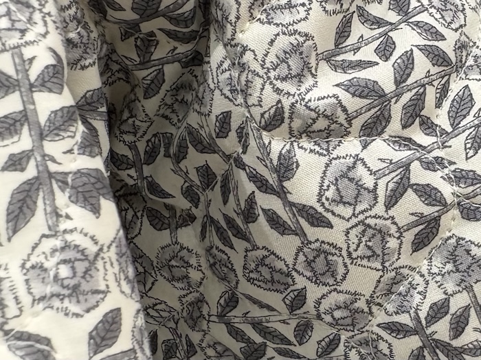 裏地に使われるsleeping roseのテキスタイルはキルティングとなっています。