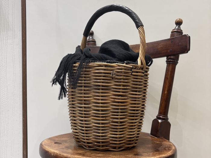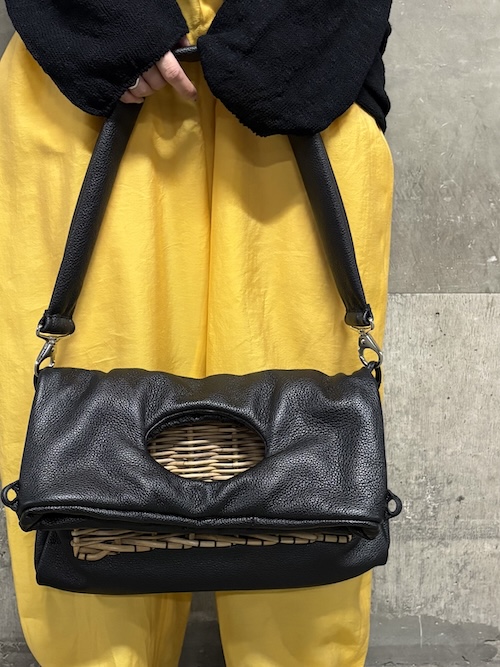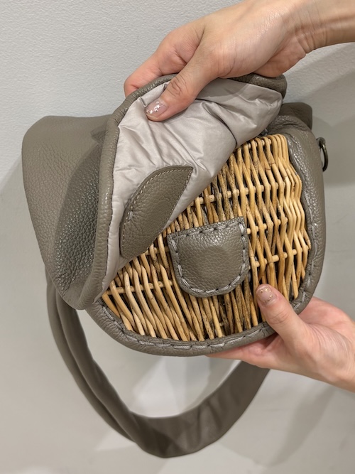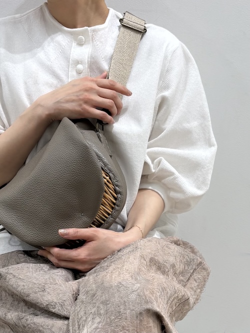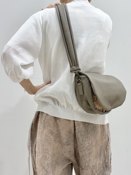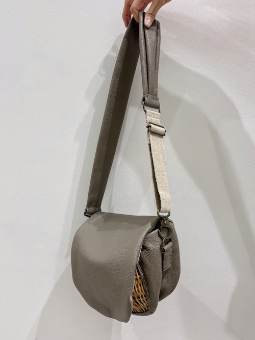 ここ数シーズン継続して製作されているボディバッグは、コロッと丸みのある籠部分が角度によって見え隠れするさり気なさが良い。