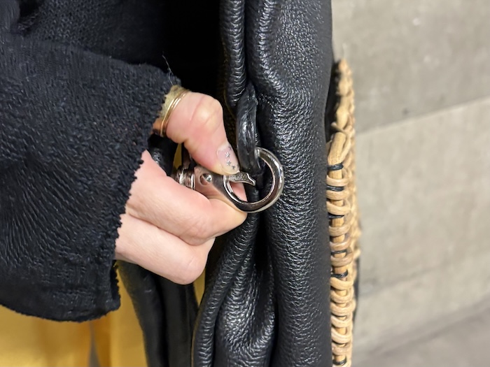 今季初めての手法で取り付けられた籠ポケットは、マチは無いけれどすぐ取り出したい携帯電話などをスッと入れられます。