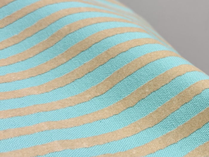 ストライプとボーダーを片面ずつデザインした、遊び心あるフロッキープリントを施したトートバッグMサイズ。