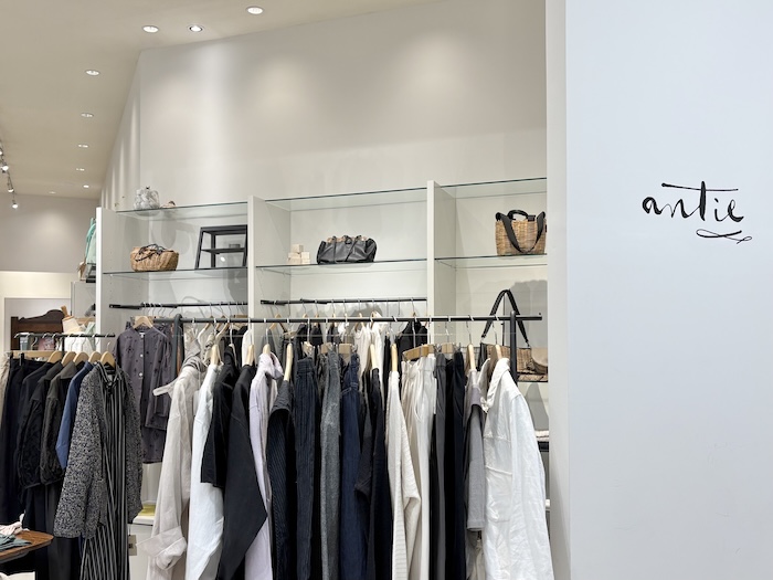 2026SSコレクションのウェアが揃うantie店内。