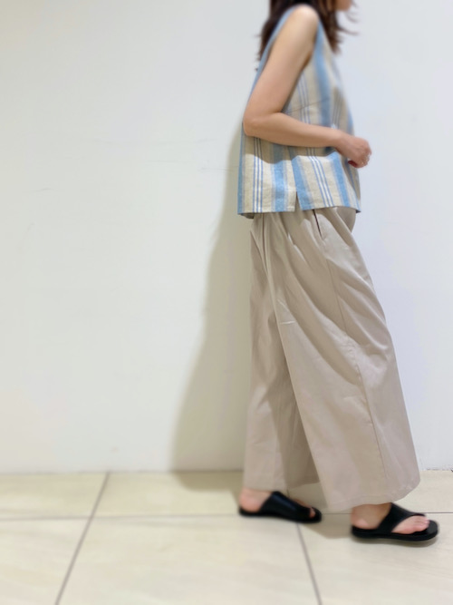 そしてもう一つのワイドパンツは、今の気分でやや短め丈のデザインがポイント。