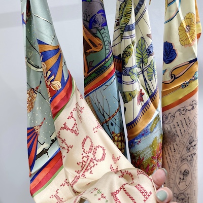 今回のPOP UP SHOPでは、絵画のように美しいシルクスカーフをはじめ、