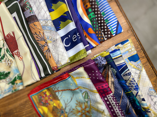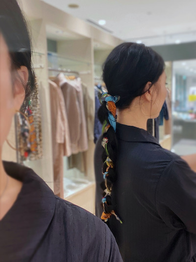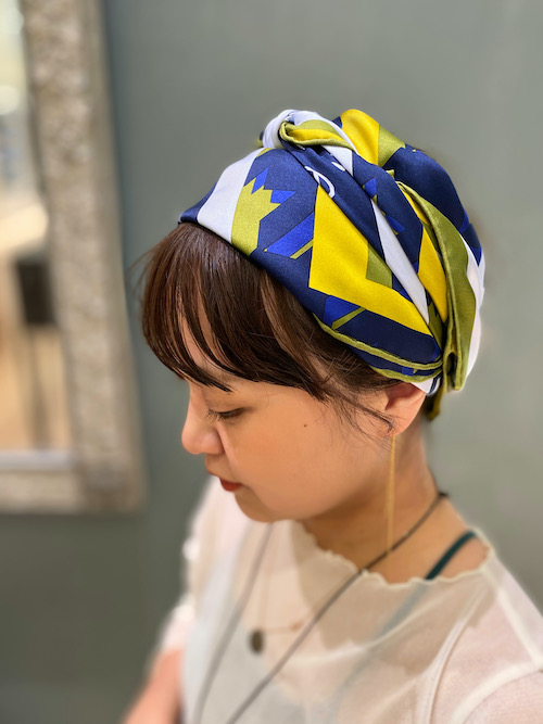 アレンジの魔術師 shimono はこの日も新しいスカーフのアレンジに夢中☺️