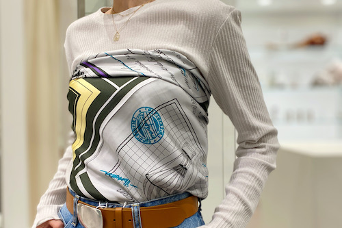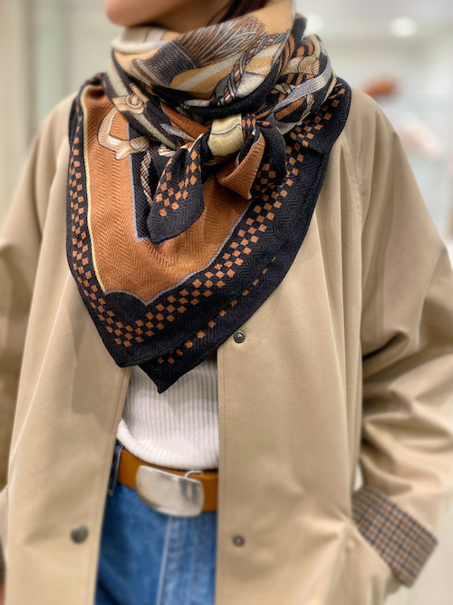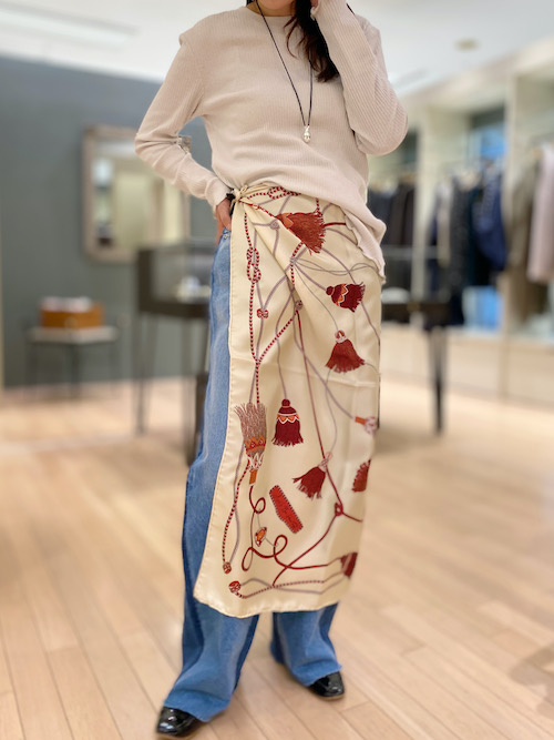 ─ 大判のシルクスカーフはアレンジ無限大!トップスのようにも。