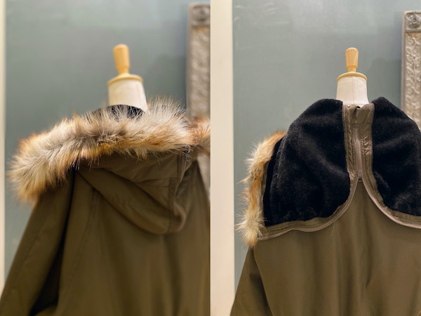 MA-1よりもさらに防寒性を高めるためのファー付きのフードが特長です。
