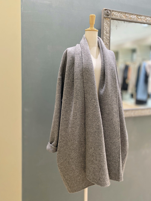 少し薄手のダブルフェイス生地を使用することで、BOX型のビッグシルエットでも肩肘張らず着ていただけます◎