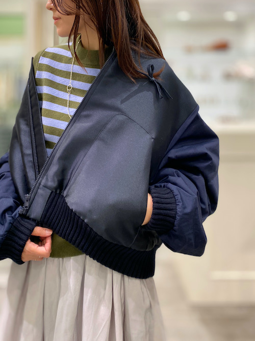 スポーティシックなボンバージャケットもELEPHの手にかかればフェミニンな雰囲気漂うデザインに昇華。