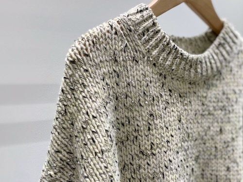 ニコルソンアンドニコルソンからは、編地の変化がアクセントになった畔編みのプルオーバーニット。