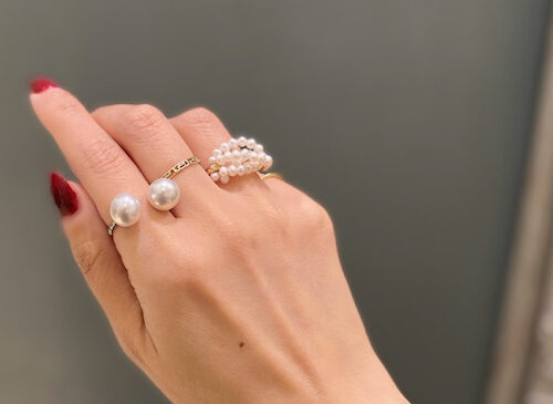 普段ゴールドやシルバーのリングばかりしているので、手元にも存在感のあるパールを合わせたくてうずうずしています😉