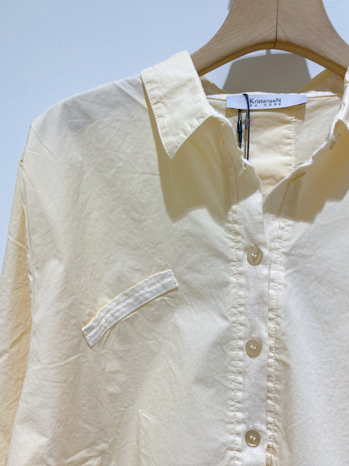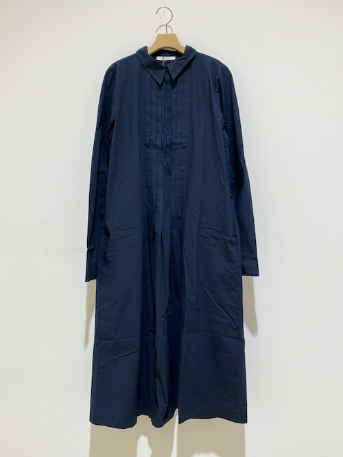 定番コットンストレッチ素材のワンピースは、シャツカラーでフロントにプリーツをあしらった、クリステンセンらしい一着。