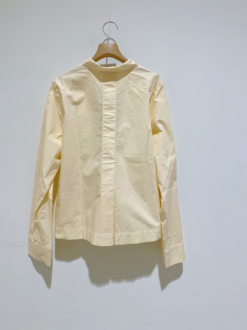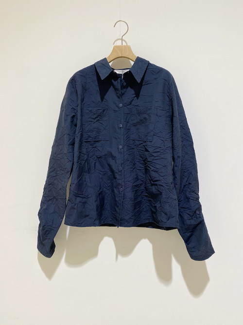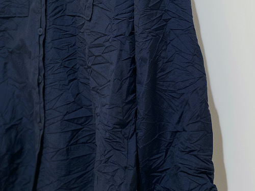 シワ加工を施したシャツは、コットンポリエステル素材で光沢があり、薄手のブルゾンのような感覚でも着ていただける一着。