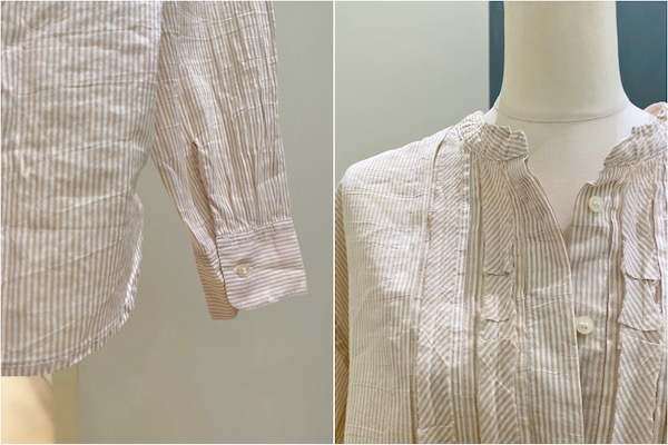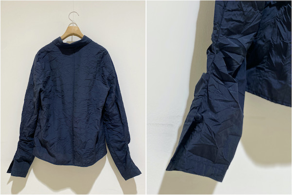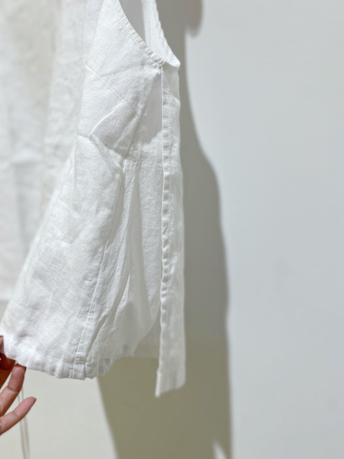 お袖が長めだったり、シワ加工に紛れて袖口にくしゅっと立体加工をしていたり、自然なこなれ感を感じられます。