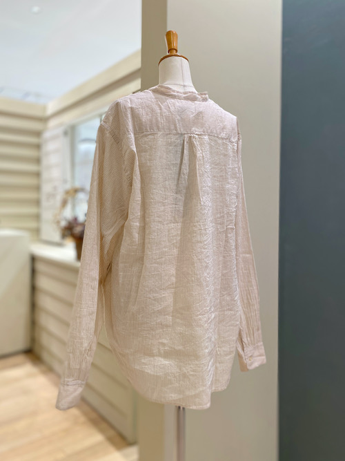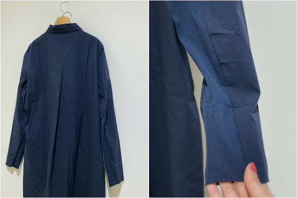 前立てやポケットデザイン部分がリネン素材で切り替わっていたり、バックデザインもアクセントになっていたりと、シンプルなシャツですが細部の拘りをしっかりと感じられます。