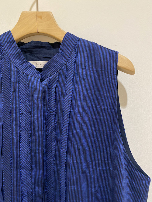 M-143 Silk Stripe Dress Sleveless (Sapphire) ¥143,000