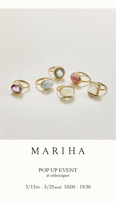 普段店頭ではご覧いただけない10シリーズ以上にもおよぶMARIHAの人気ジュエリーが enbouquetに大集結します。
