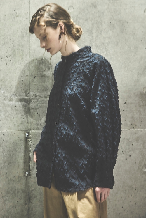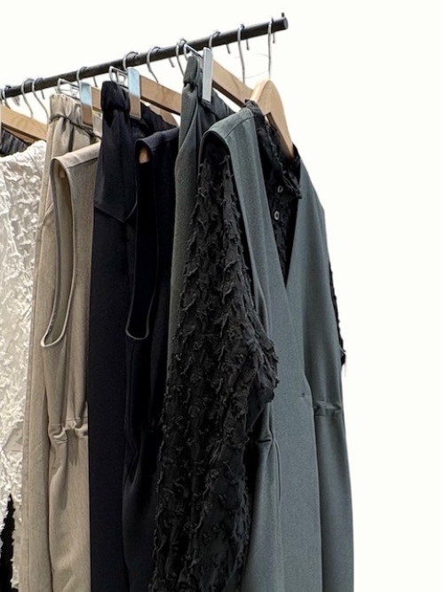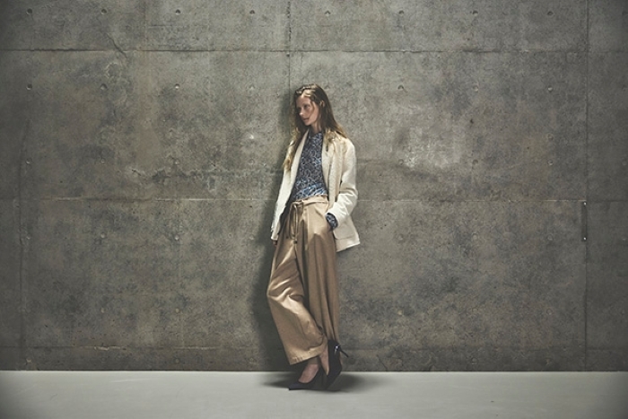 シンプルなシルエットを基本に、オリジナルの表情ある生地で程良く個性的なウェアとして注目されています。