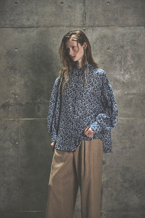 コンパクトなカフスが手首できゅっと留まる事で、スリーブのふわっとしたボリュームがより一層際立つシルエット。