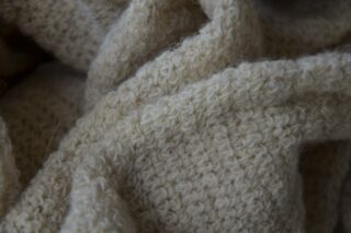 ベースはコットンリネン。起毛した素材の摩擦により形が崩れづらいので、襟元をコンパクトにきゅっと前を合わせても安定感は抜群。もちろんラフに羽織っても。