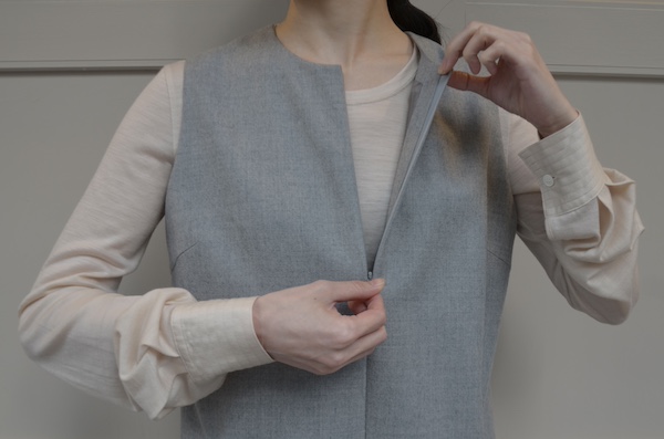 ボトムのバリエーションに加えて今回intocaのコレクションで目を引いたのがジレのラインナップ。