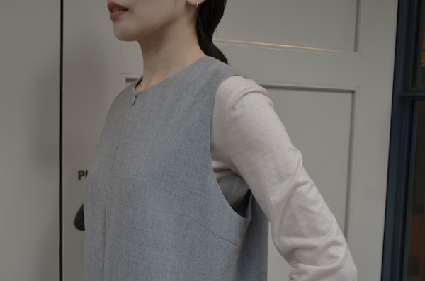中にレイヤードしたのもジレ。ジレonジレ