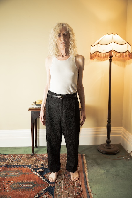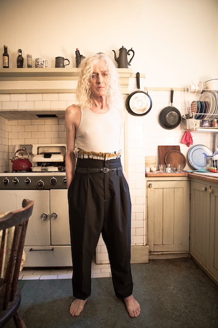 デザイナー自らの手で選んだユーズドのパンツに切り替えとダーツを施し、再度構築したコレクション。