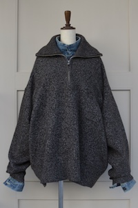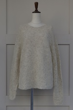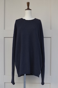 crew neck:極限まで目詰まりしたボンディングのようなセーター。無染色のヤクの糸を混ぜ込んでいることで、色合いも絶妙で素晴らしいんです。¥83,600(AEHRR)