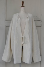 white: 部分的にアラン編みが施されたオーバーサイズのウールカーディガン。白シャツに、ハイネックに、デニムに、スタイリングの妄想が楽しくなるような一枚です。¥35,200(SEEALL)