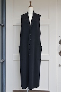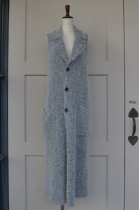 black: 厚みのないハイゲージのミドル丈ジレ。ワントーンで繋げてドレスのようにスタイリングするのもおすすめ。¥81,400(intoca)
