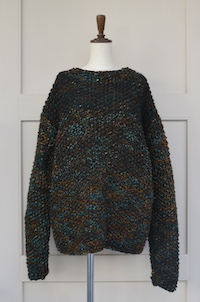 multi:よくよく見ると肩周りだけ色使いがダーク。裾にかけて徐々に多色使いの編み地になっています。どことなくカモフラ柄のよう。¥75,900(SEEALL)