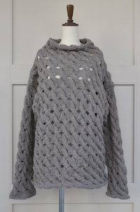 crew neck:空気感を出したかぎ針編みのプルオーバーセーターはサーマルのカットソーのような感覚で。¥159,500 (HIROMI TSUYOSHI)